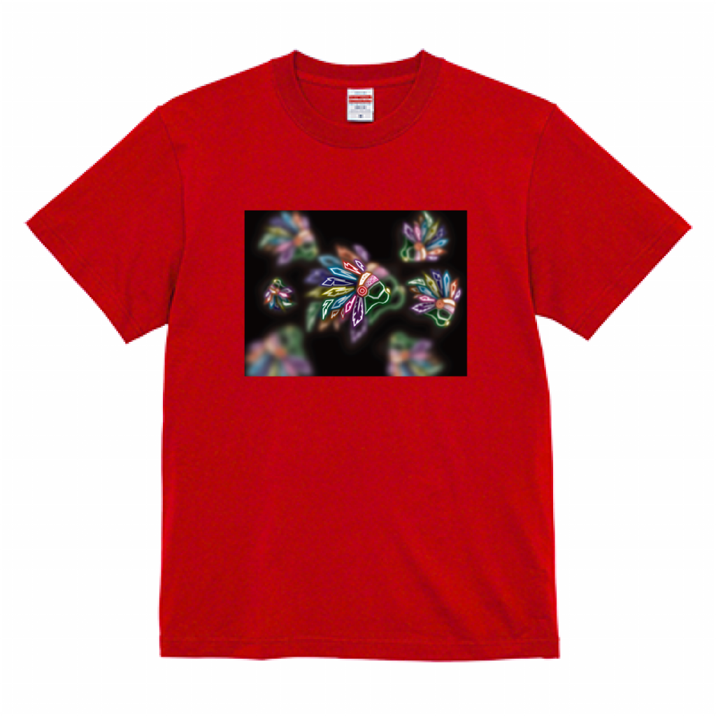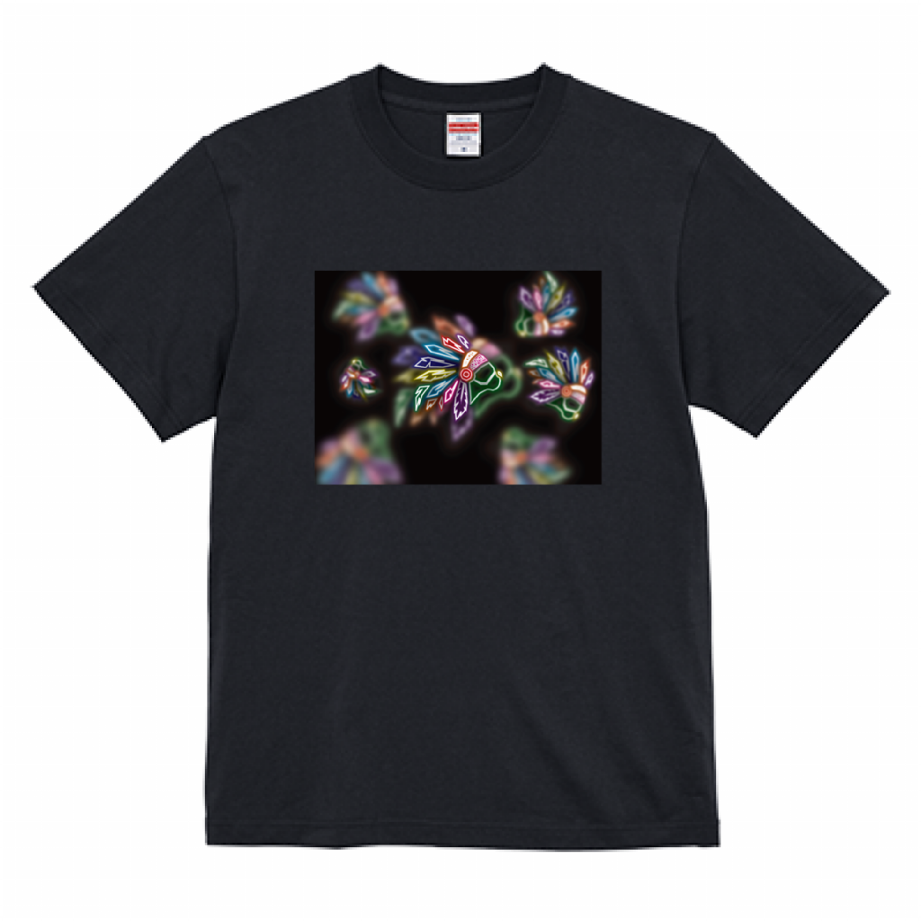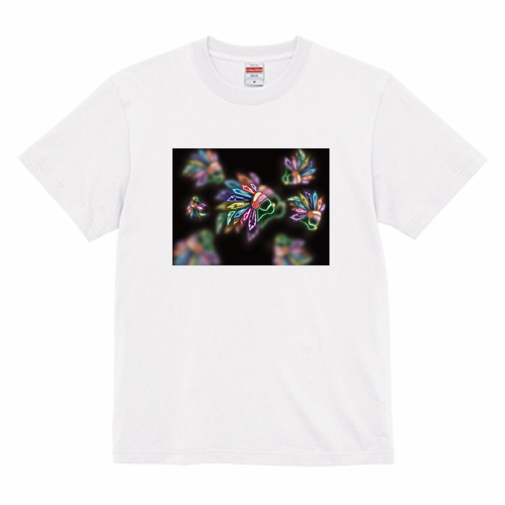ドットドッグのロゴがネオン調になったデザインTシャツ。